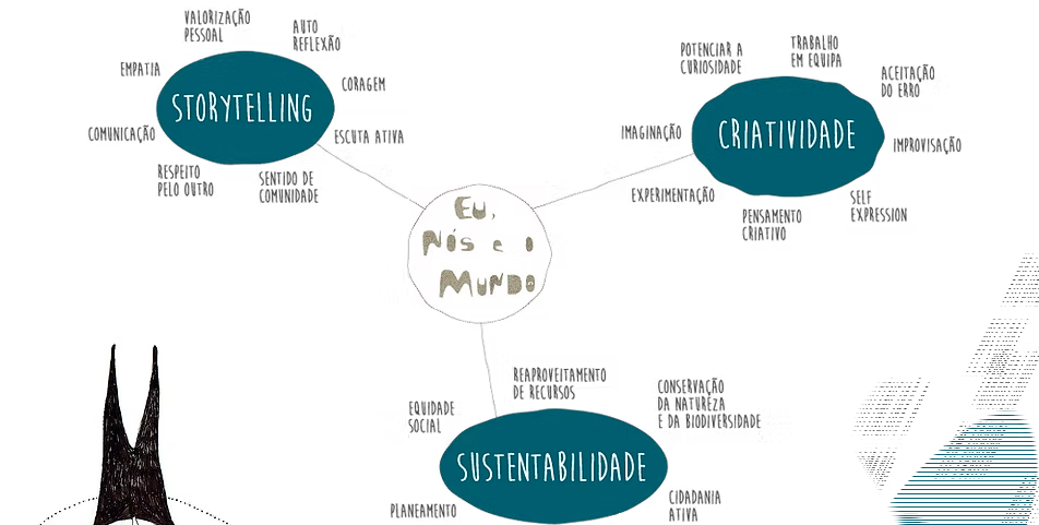 Ao longo do processo de construção da apresentação final ao público, o storytelling é também uma técnica utilizada com as crianças e jovens. Proporciona-lhes: valorização pessoal, autoreflexão, coragem, escuta ativa, sentido de comunidade, respeito pelo outro, comunicação e empatia. Este projeto também incentiva a criatividade e com ela: potencia a curiosidade, o trabalho em equipa, a aceitação do erro, a improvisação, a imaginação, a experimentação, o pensamento critico, a participação no projeto proporciona conhecimento do mundo e promove por todos estes motivos a cidadania ativa. Sendo estas ferramentas potenciadoras para a aprendizagem e formação ao longo da vida de todos os agentes participantes envolvidos.